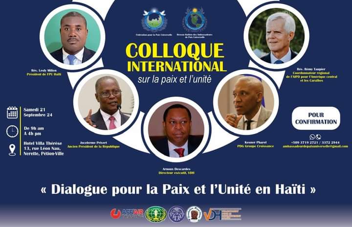 La branche Haïtienne de la Fédération pour la paix universelle (FPU) et le Réseau Haïtiens des Ambassadeurs de paix Universelle (RHAPU) a célébré en grande pompe cette journée à travers un Colloque international sur la paix et l’unité.